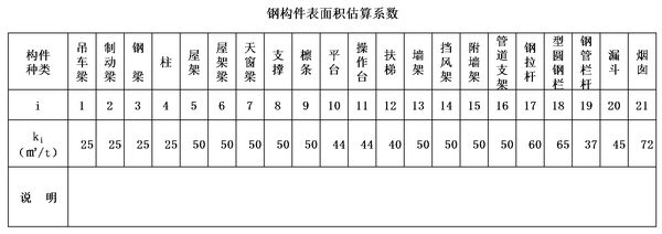 根据**从事建筑钢结构工程造价人员测定和大量数据总结,不同种类的钢构件,其表面积和重量的关系为: